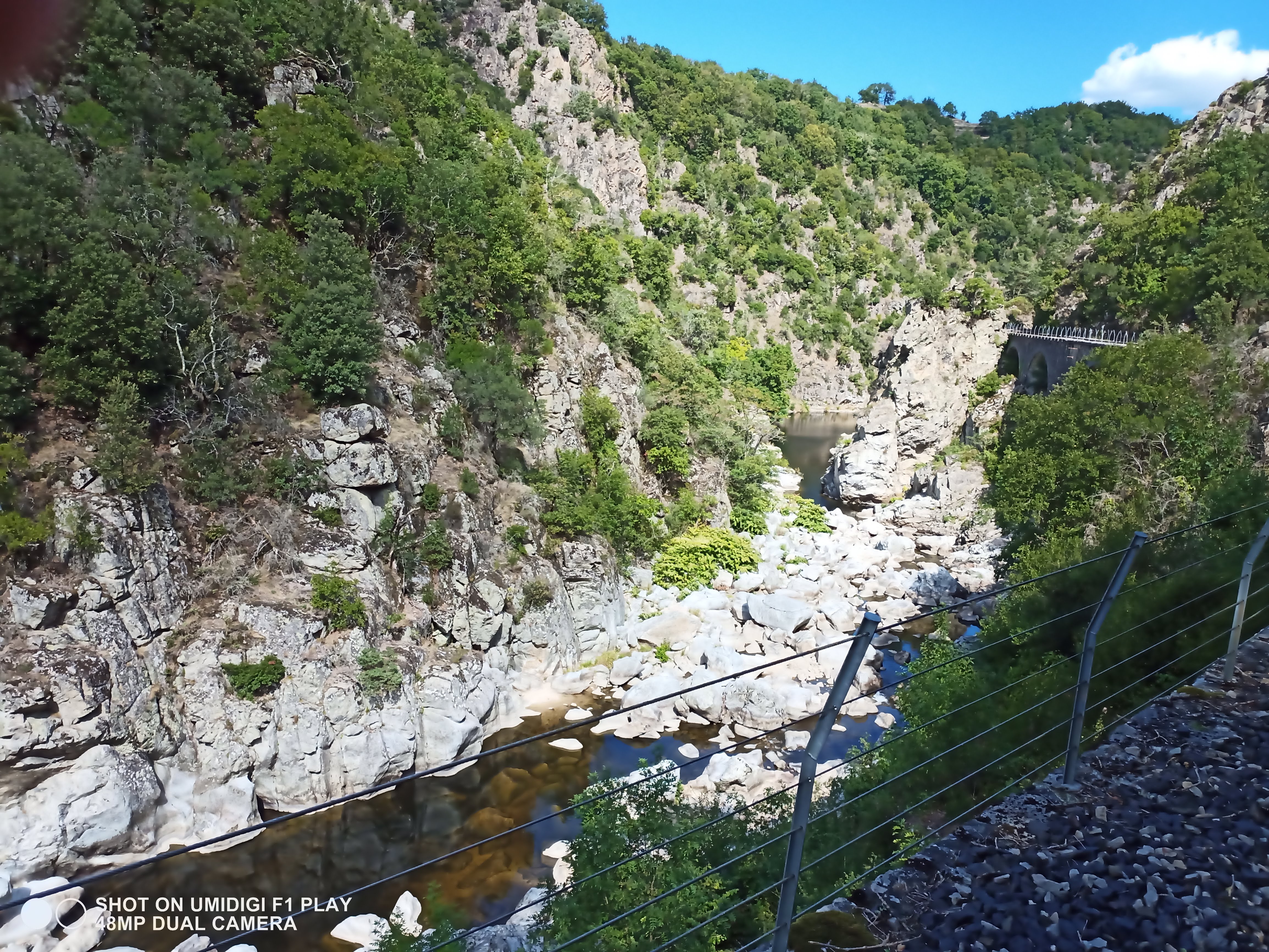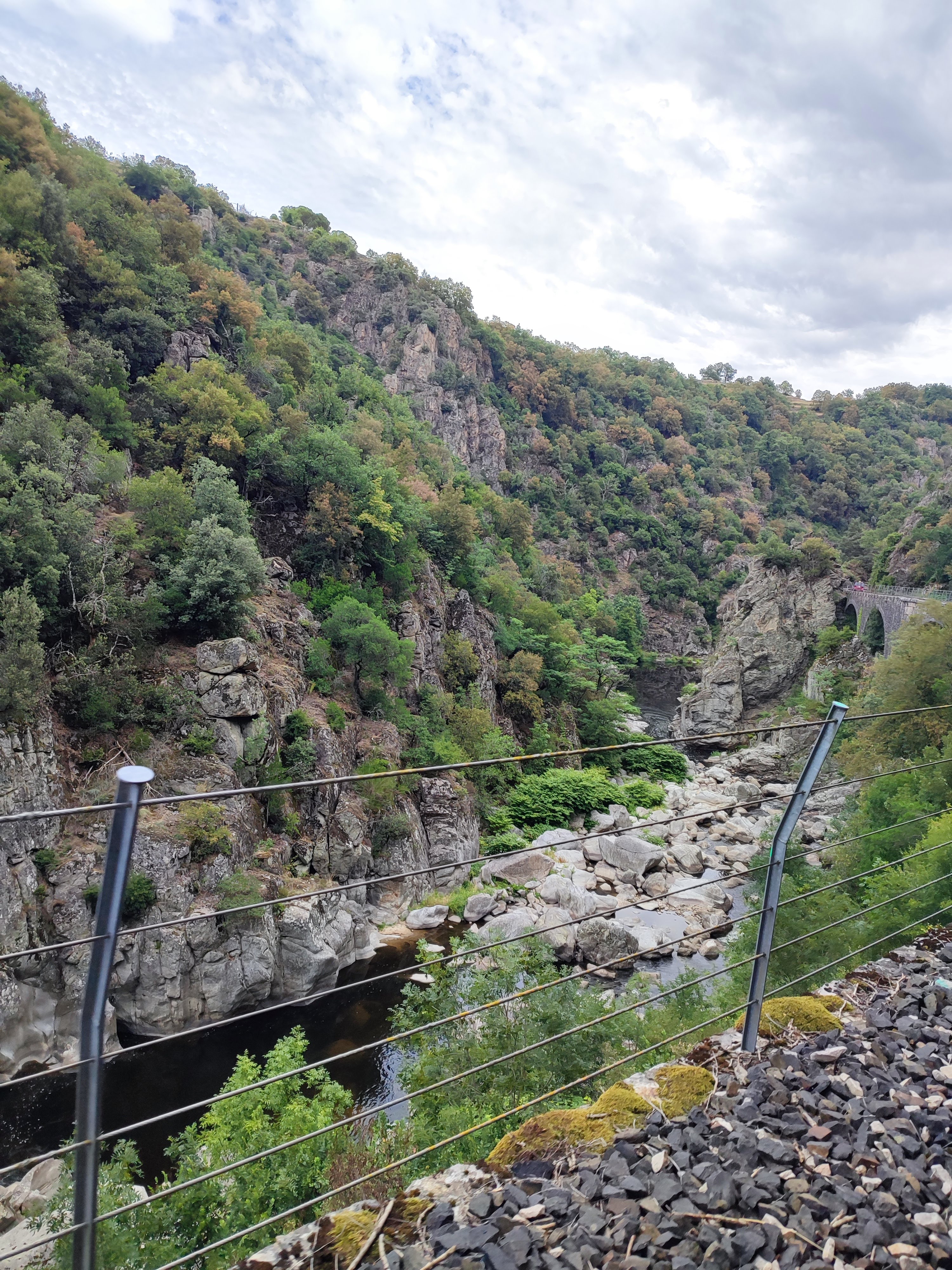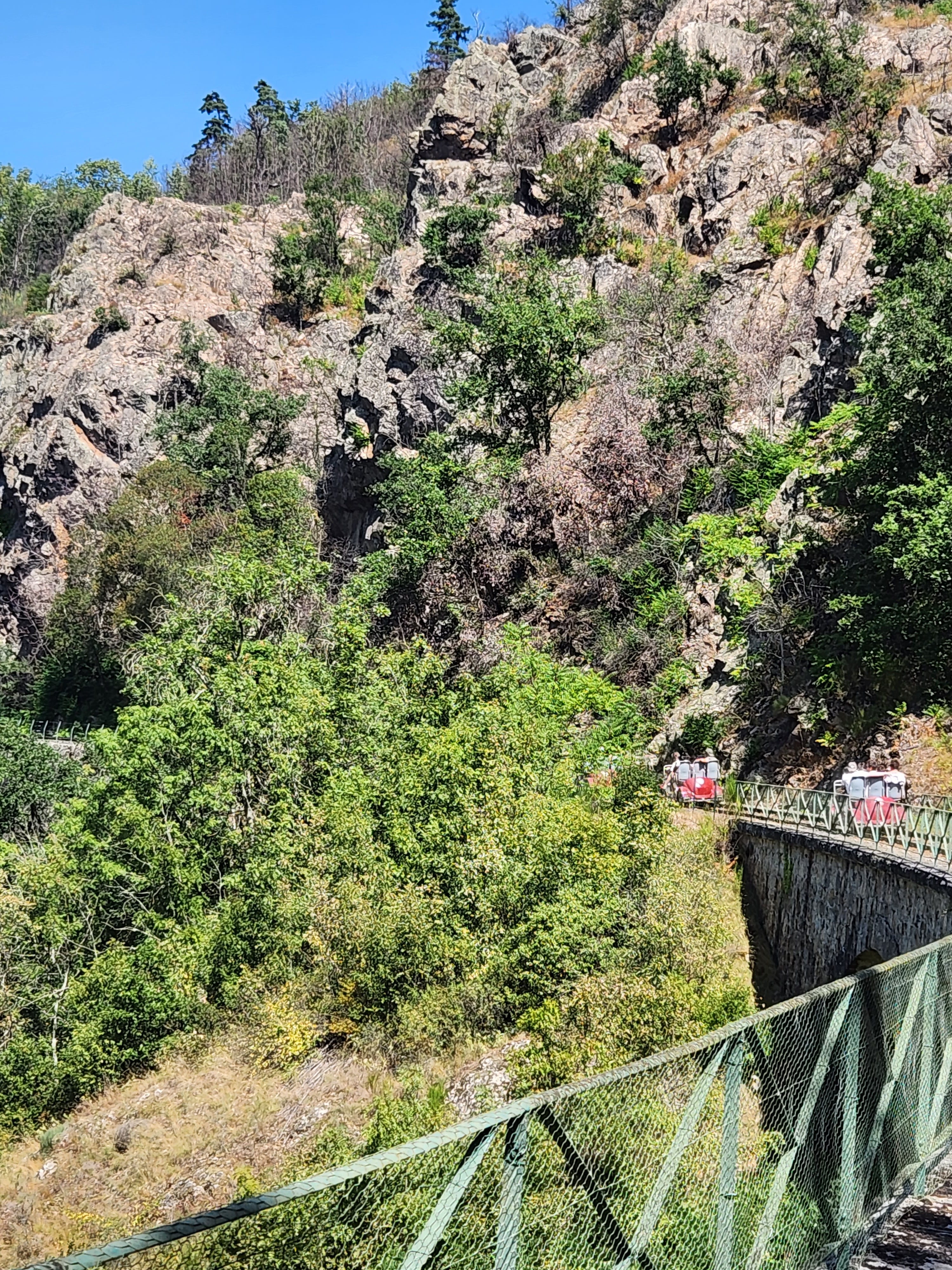 Beau parcours le long des gorges du Doux. Il faut faire un choix entre 2 trajets: le parcours des étroits ou celui du viaduc. J'ai choisi celui des étroits annoncé moins sportif. Un peu déçu de la premiere partie plus en zone boisée. Par contre la deuxième où on surplombe les gorges du Doux est sensationnelle. Accessible en famille car le trajet est principalement en descente et la remontée se fait en train. Il faut compter entre 2h et 2h30 en totalité. Possibilité de pique-niquer sur place