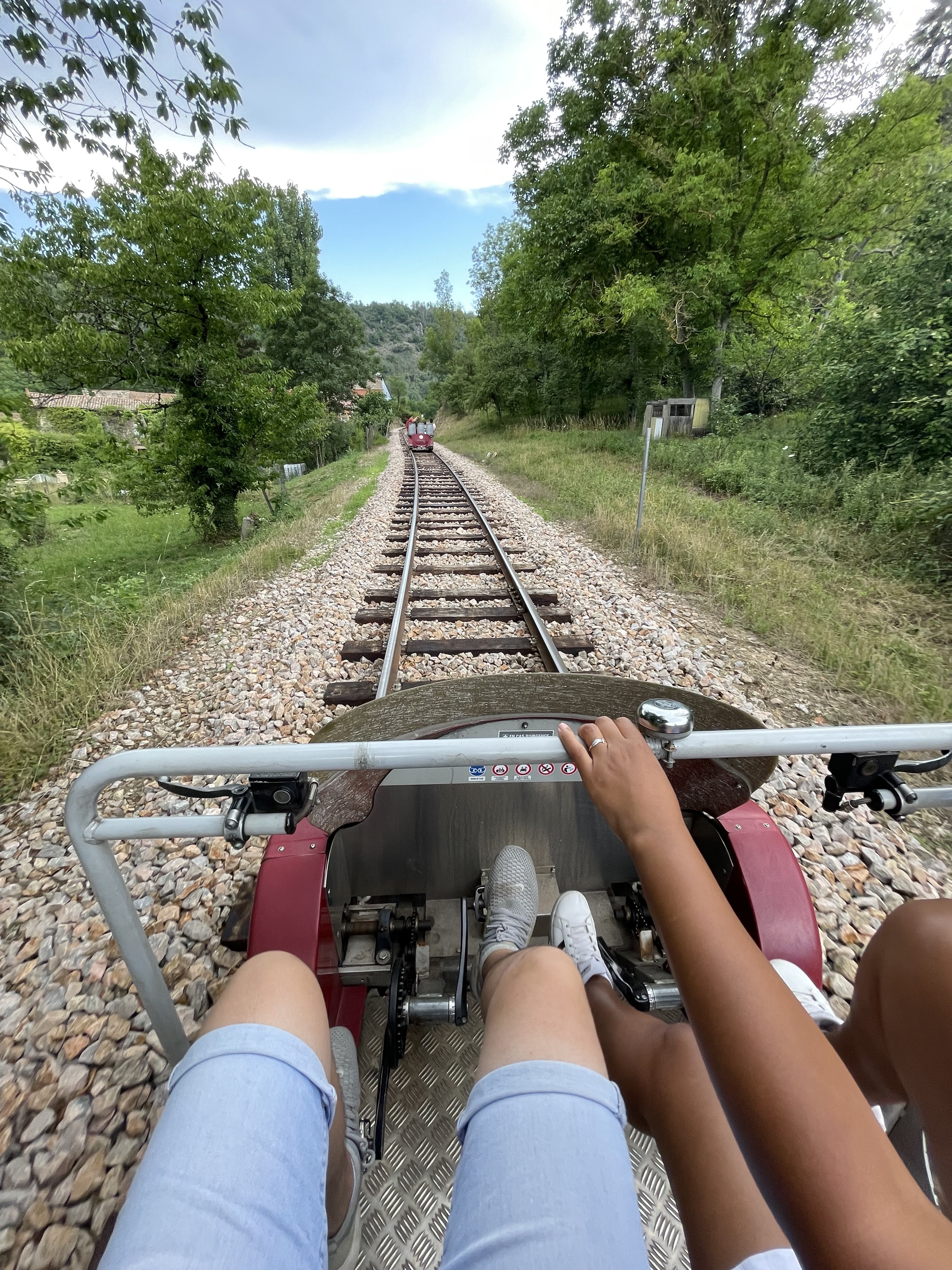Une superbe balade a coup de pédale dans une Ardèche sauvage et verdoyante, pas de gros efforts mais un maximum de plaisir pour les yeux. Je vous recommande le vélo rail