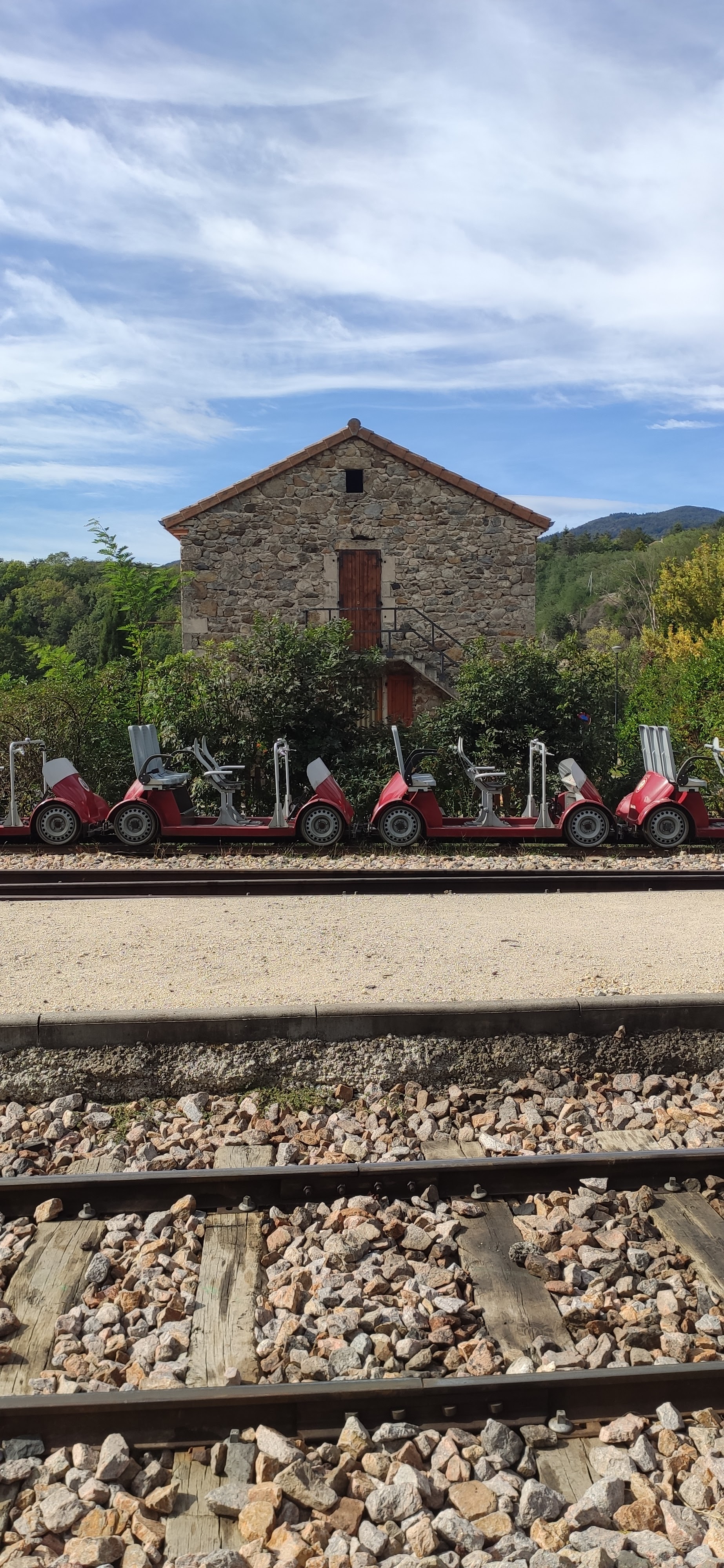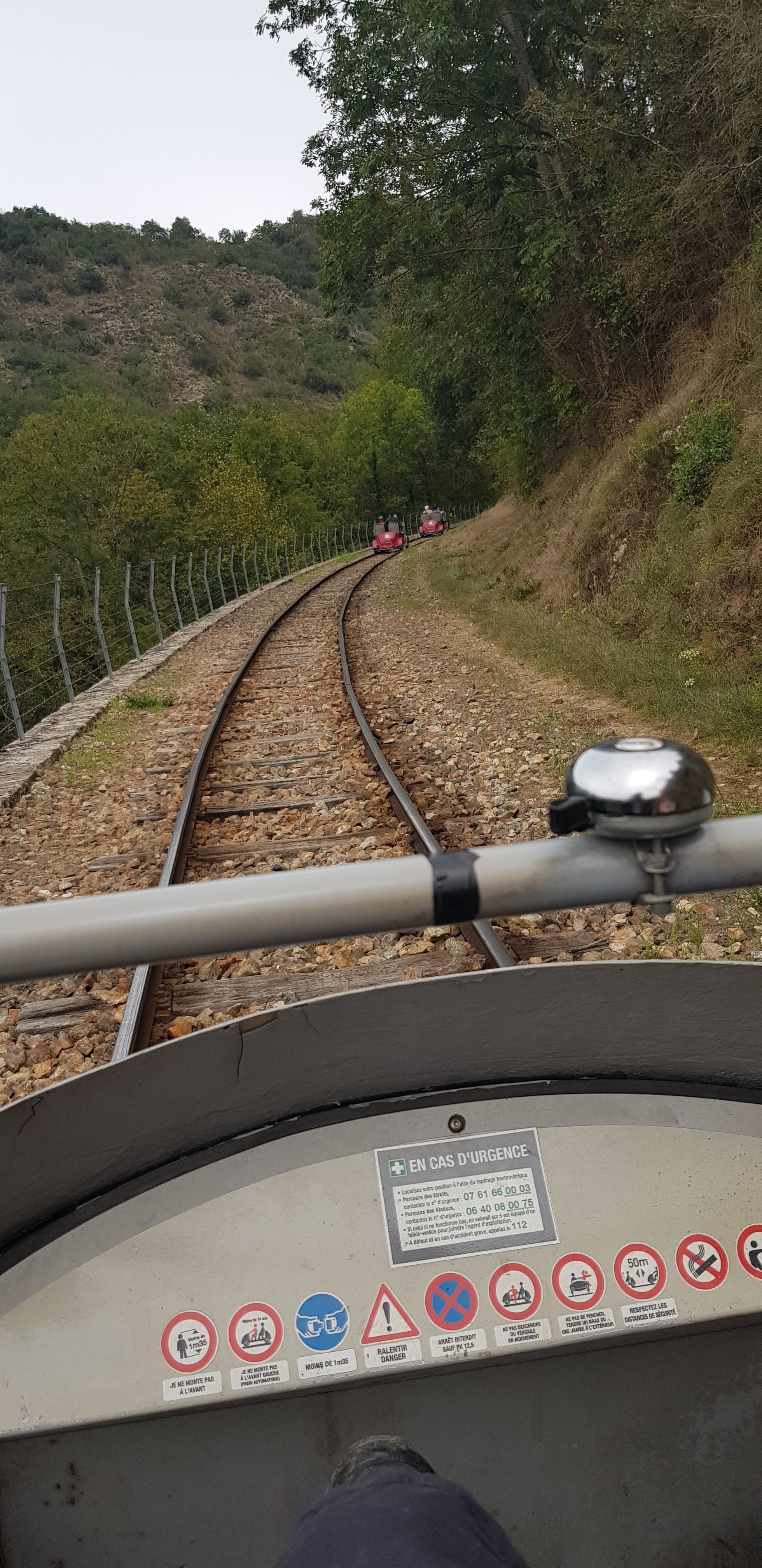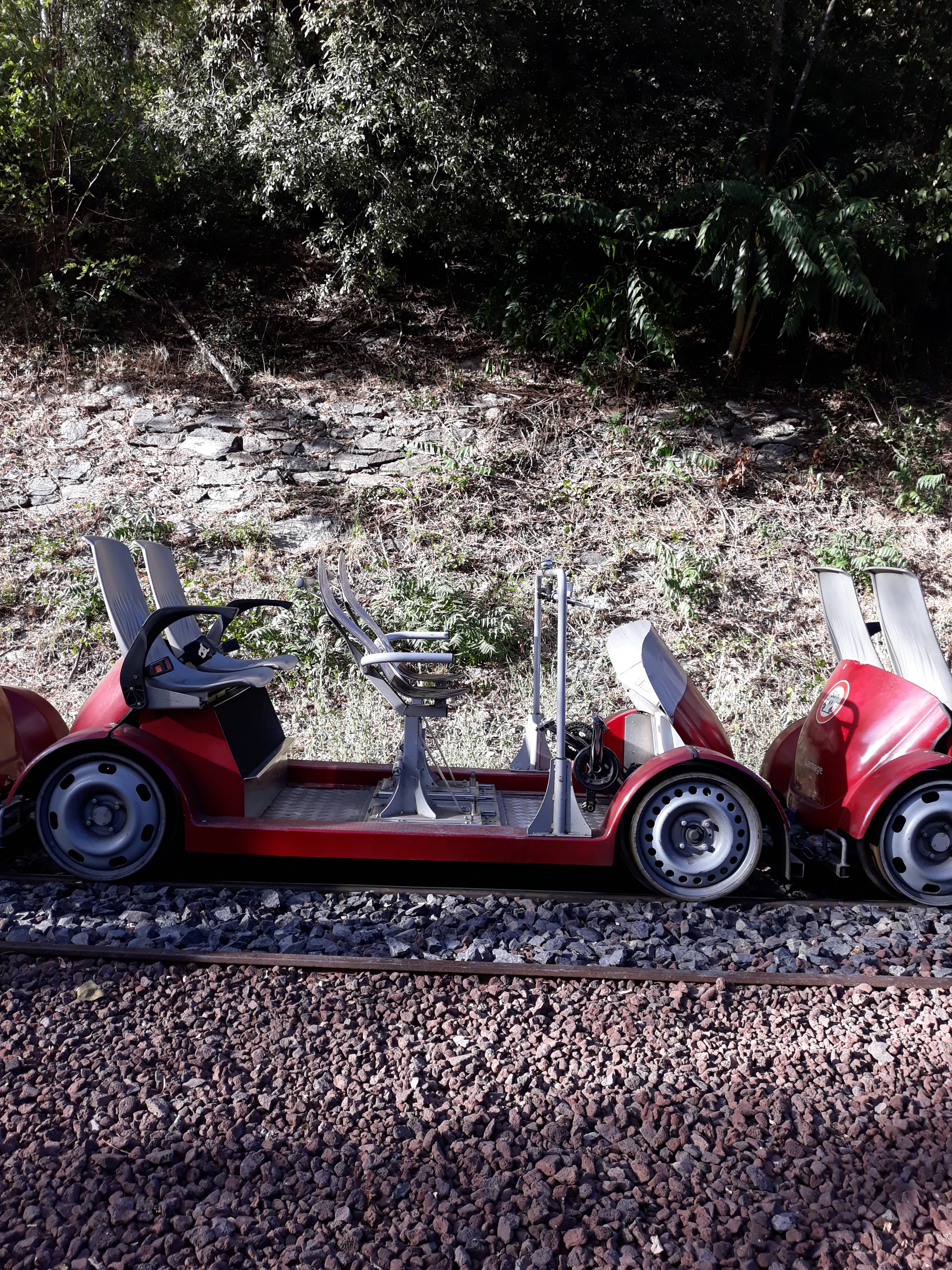 Parcours des étroits fait pour nous. Départ en chariot et retour en train. Excellente activité à faire en familles ou entre amis. Faire du vélo sur les rails d'anciens chemin de fer dans un paysage splendide est vraiment sympathique ; Le tout dans un cadre magnifique. Il faut quand même emmener les 350kg du chariot dans certains faux plats. Les sièges font un peu mal au derrière et l'ergonomie ne sera pas absolument au top pour tout le monde, mais. E n'est que 1h après tout ! Le retour en autorail est très sympa, mais ça enfume le gasoil ! Et le moteur n'est jamais arrêté même à l'arrêt pendant de longues minutes (pas super l'écologie ici ...) Mais sinon c'est génial !