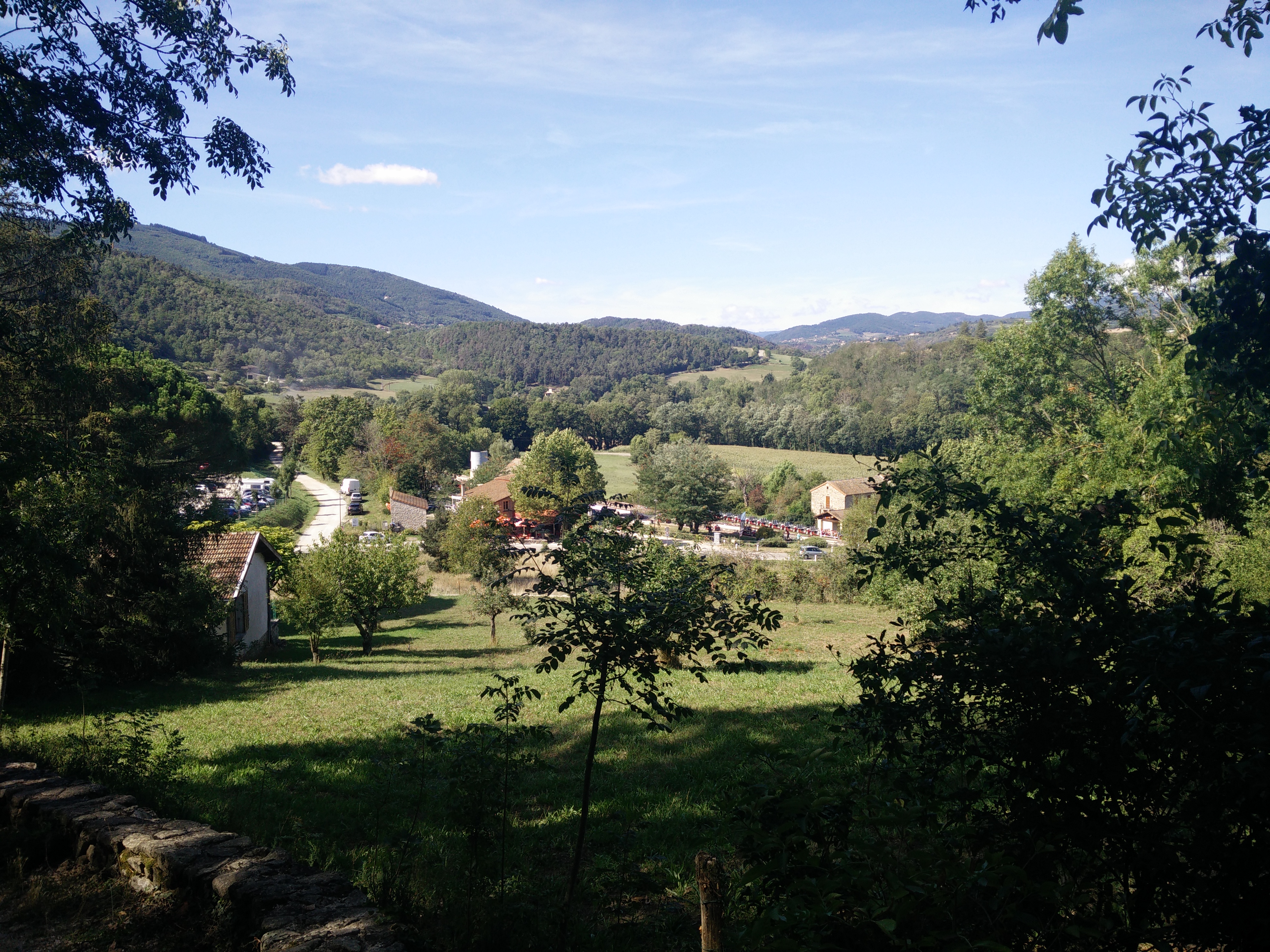 On a fait la petite des châtaigniers. De la descente, on n'est pas obligé de pédaler tout le temps. Belle vue, bien qu'il paraît qu'on a loupé le plus beau si on avait commencé un peu plus haut.