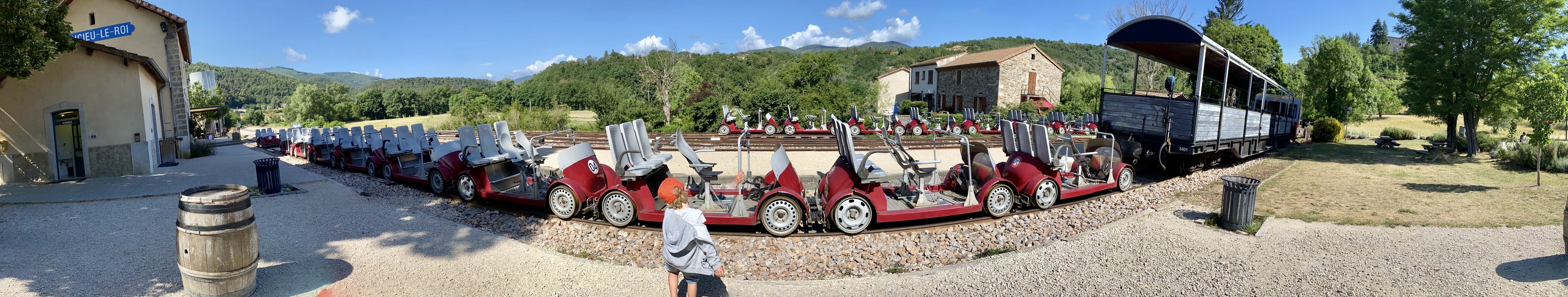 Parmi les 4 possibilités, j'ai fait le circuit des étroits (partie basse de la ligne de chemin de fer). Balade très sympa à faire. Je ferai le reste de la ligne lors d'un autre séjour en Ardèche pour découvrir la partie haute de cette même ligne. Je recommande. Même si la voix ferrée est en descente, prévoir 2 adultes pour pédaler.