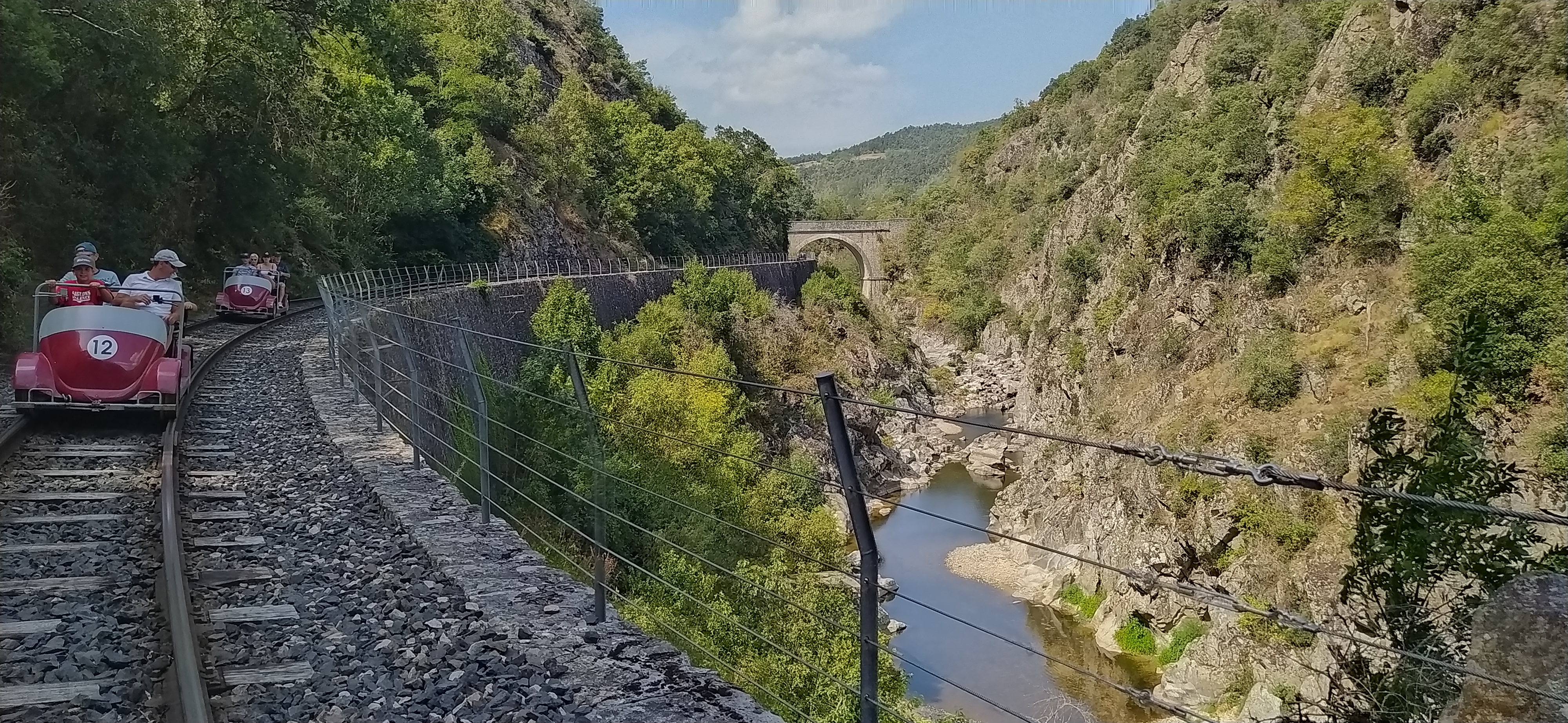 Une découverte de la vallée très original. Il faut de bonnes jambes pour faire avancer ses velorail. Mais franchement je vous le recommande. Vous découvrirez en vous divertissant le travail des hommes qui ont fait des chemins de faire à travers l'Ardèche ! Un charme incroyable, une remontée dans le temps. Mes petits enfants ont été sous le charme et ont découvert les anciens grand loin de ceux que nous connaissons maintenant. Ils étaient éblouis et leurs yeux brillaient de joie et de découvertes !!