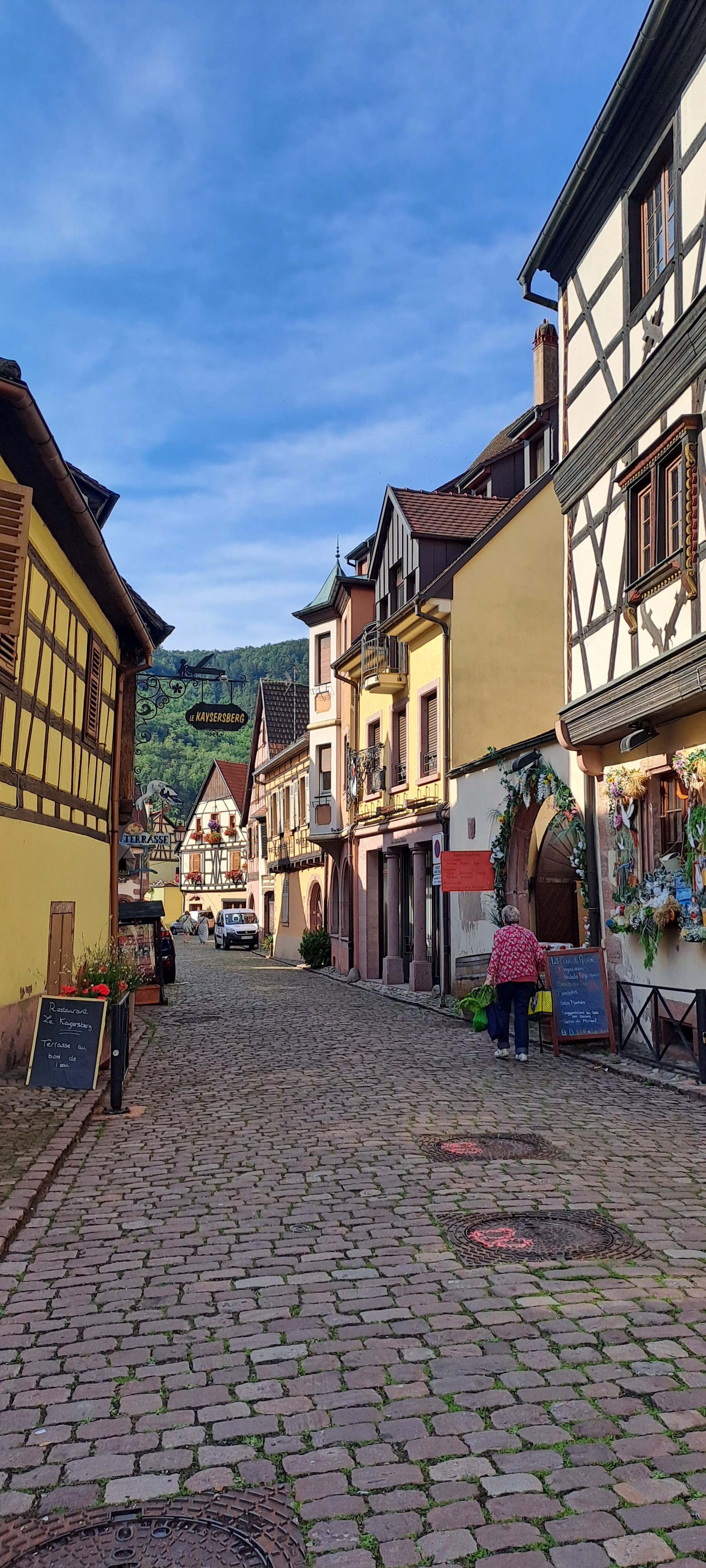 Un bel endroit sur la route des vins d'Alsace. Pas autant de monde que Colmar. Tout simplement fabuleux. Les maisons à colombages sont toutes en bon état, agréablement colorées et le château domine la ville. Comme nous avions déjà visité Riquewihr et le Château Royal ce jour-là, cet itinéraire était malheureusement trop loin pour nous. Kaysersberg est vraiment la plus belle ville d'Alsace car les maisons ne sont pas si peintes de couleurs vives. C'est harmonieux et beau.