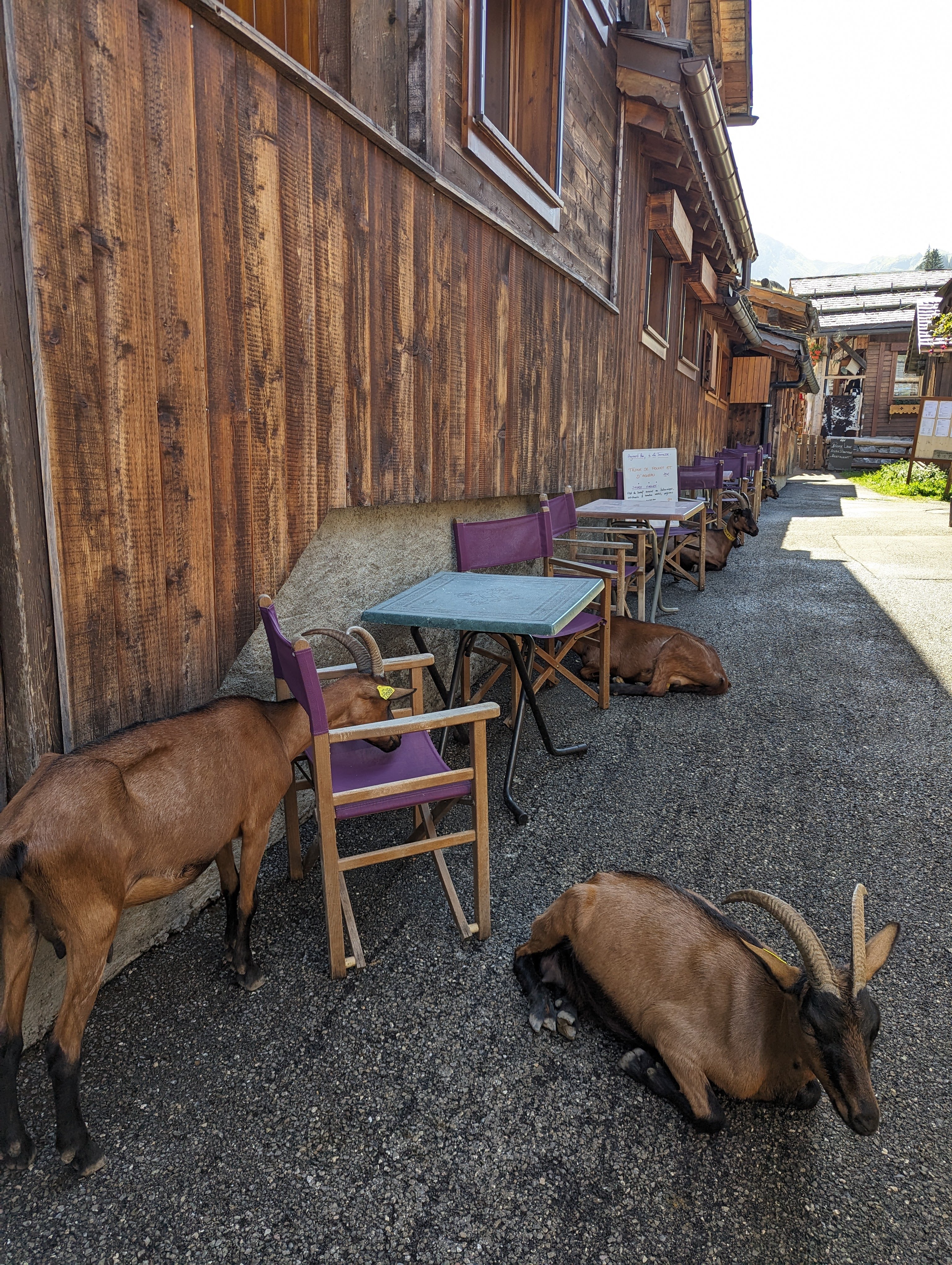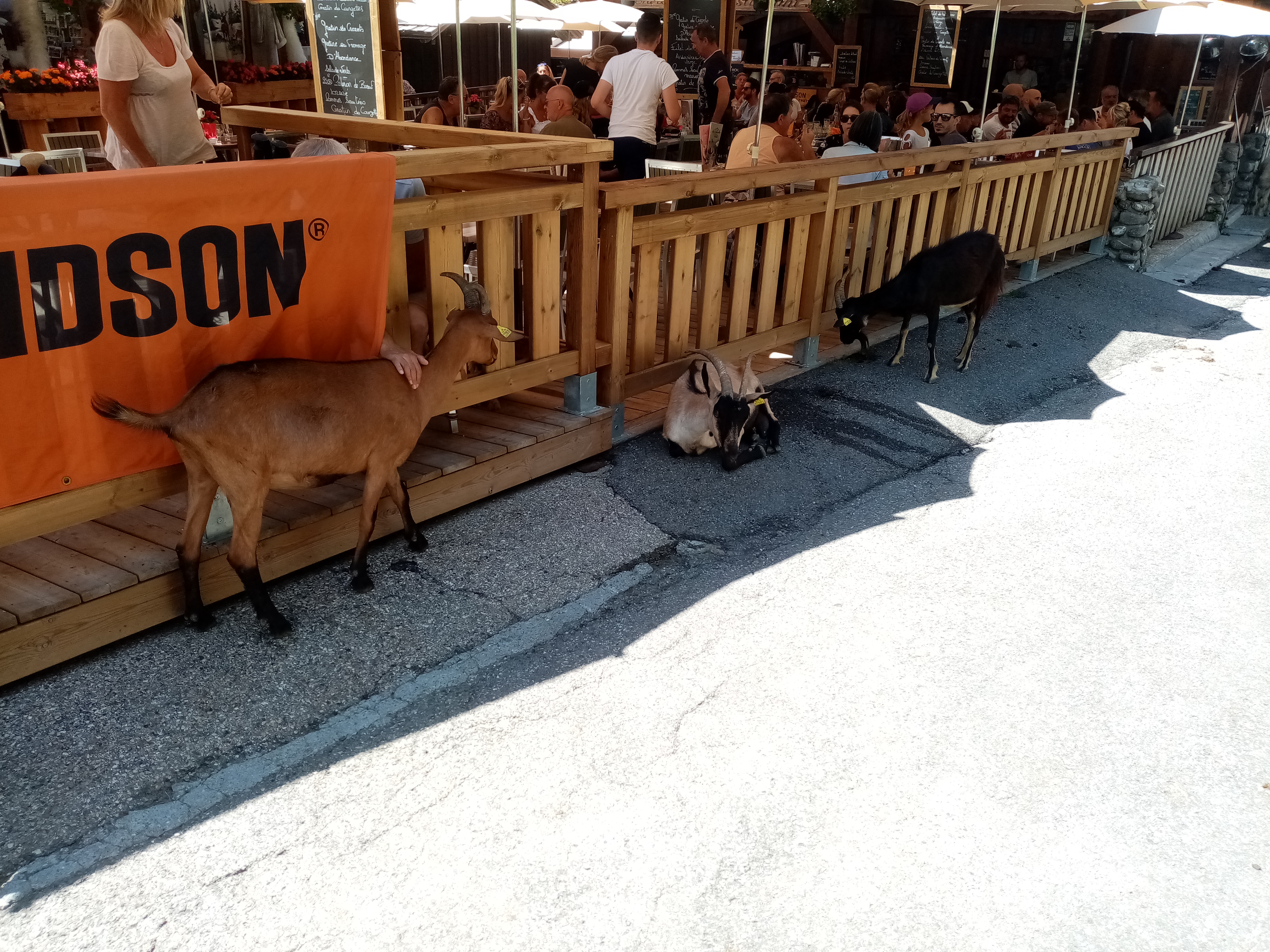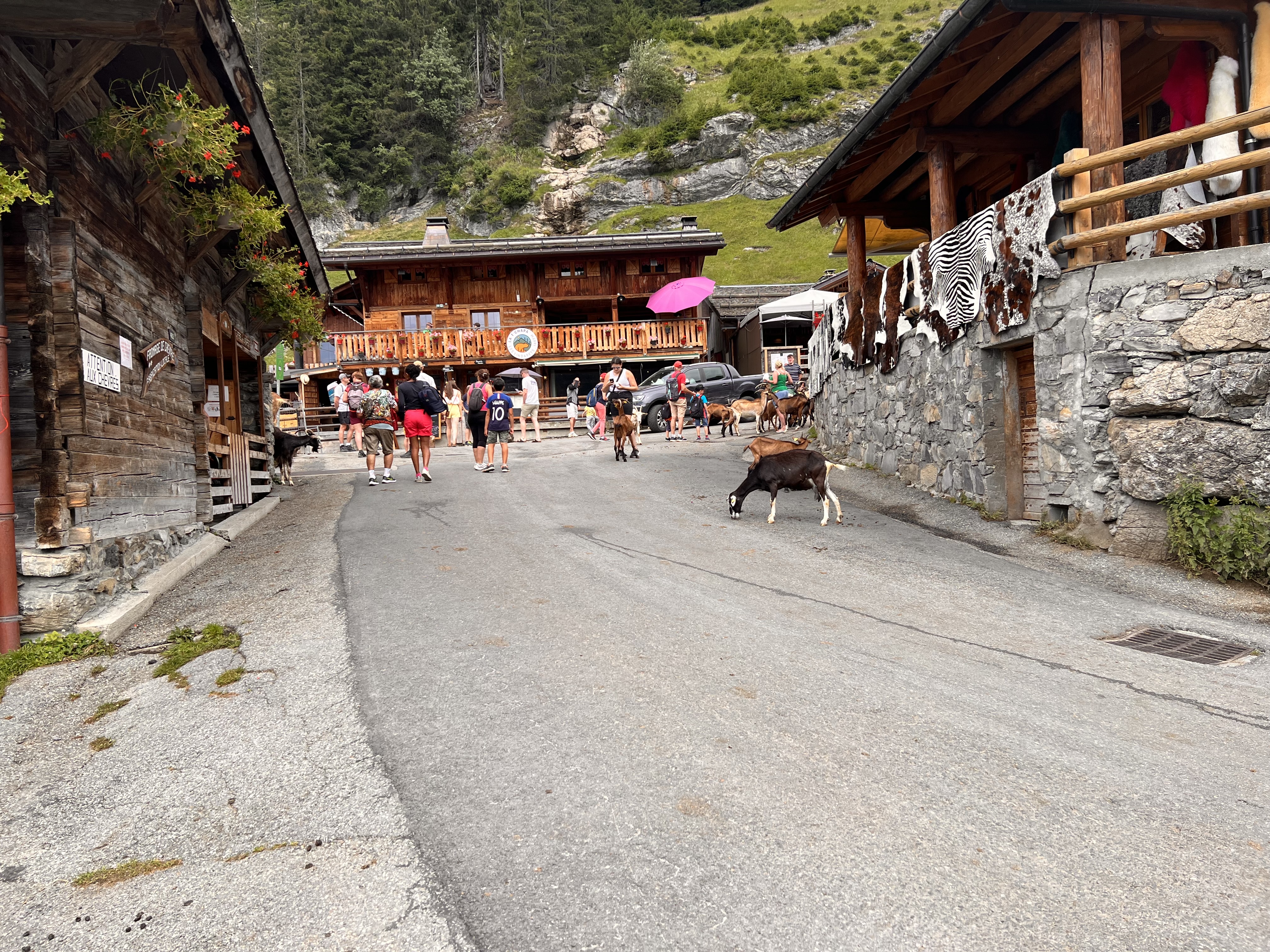 Effectivement le village est animé par un important troupeau de chèvres en liberté dans l unique rue. Elles garantissent l animation et font bien sur le bonheur des enfants. J ai trouvé que le tout faisant un peu carte postale artificielle : de beaux chalets abritant bars, restaurant et commerces ( notamment de peaux de bêtes tannées) ...