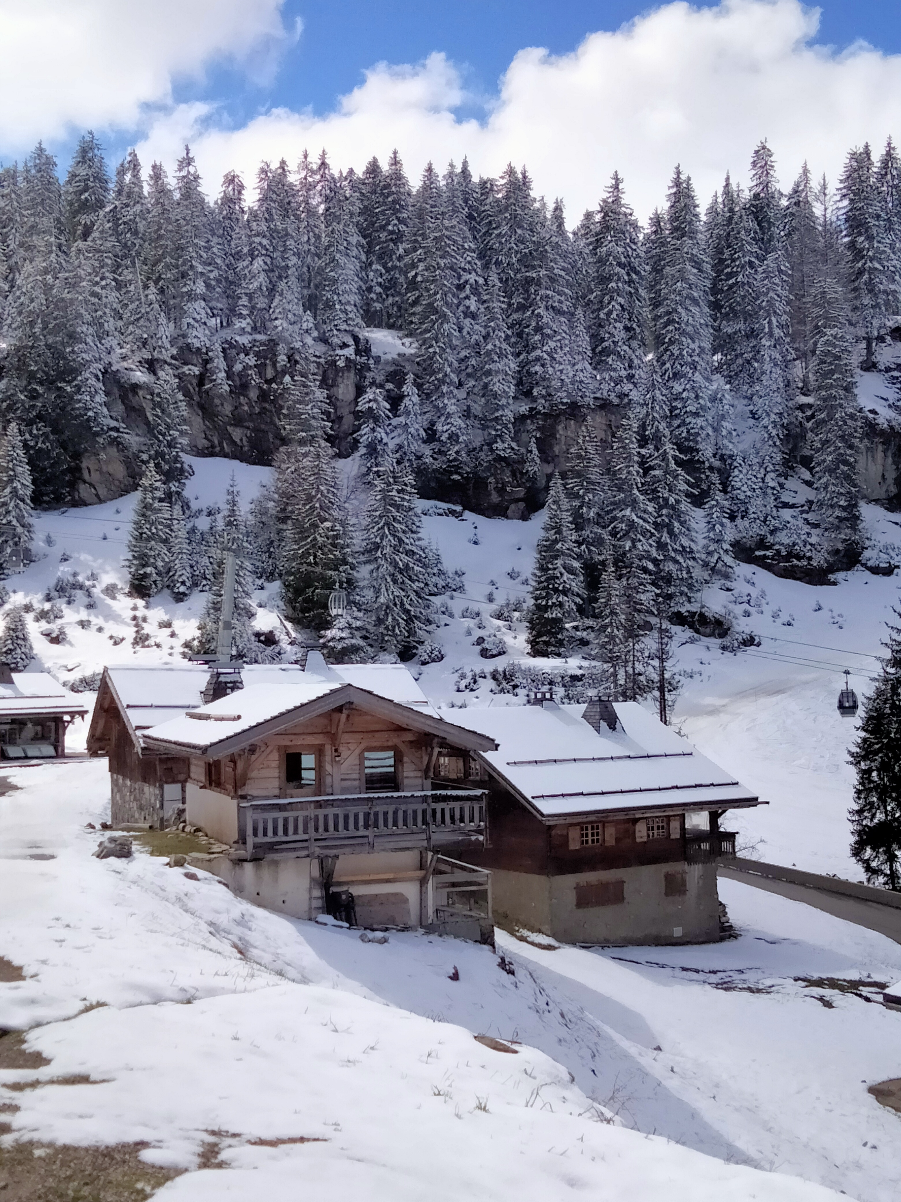 Petit hameau perché au milieu des pistes. L'endroit idéal pour une pause déjeuner, un goûter ou autre.