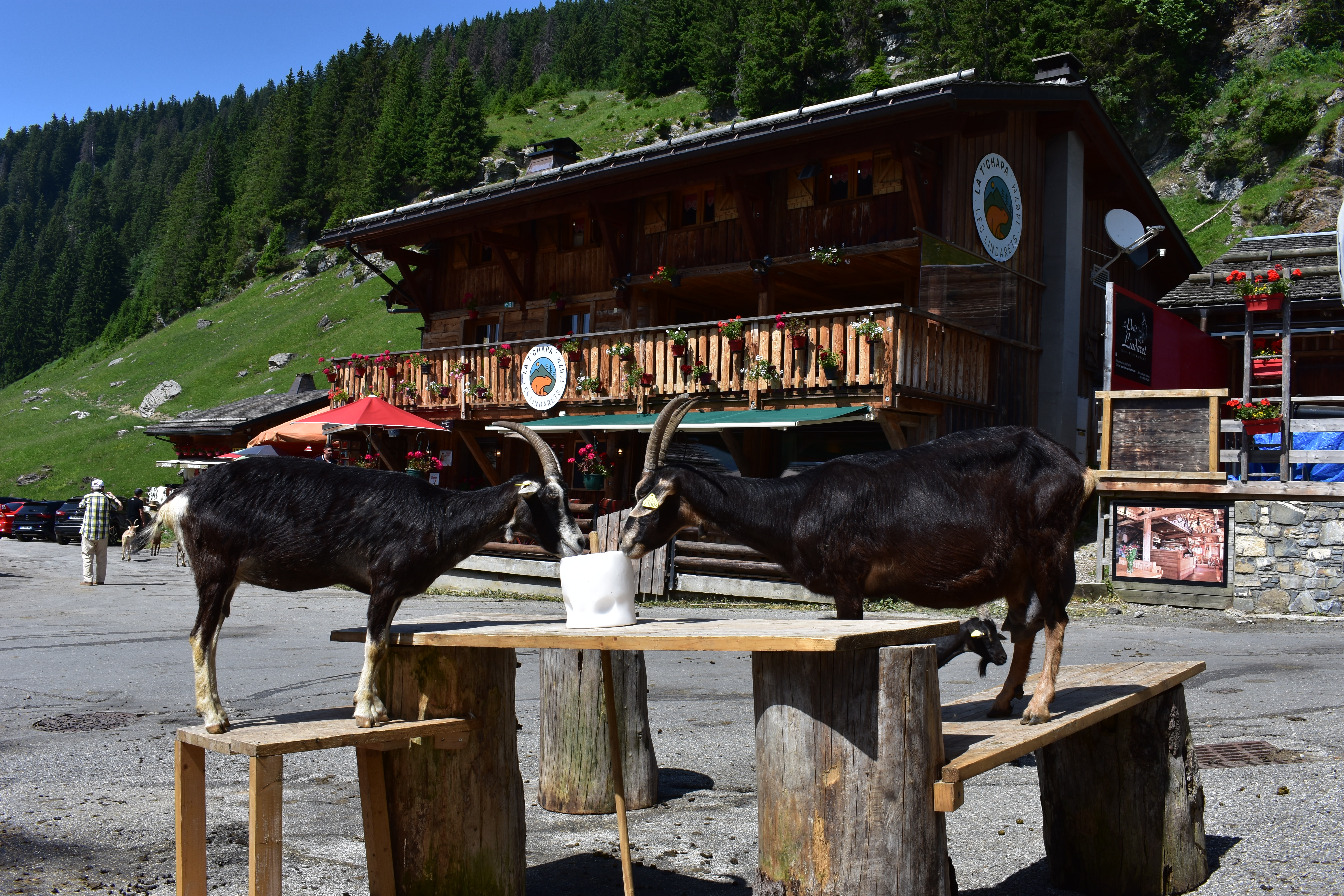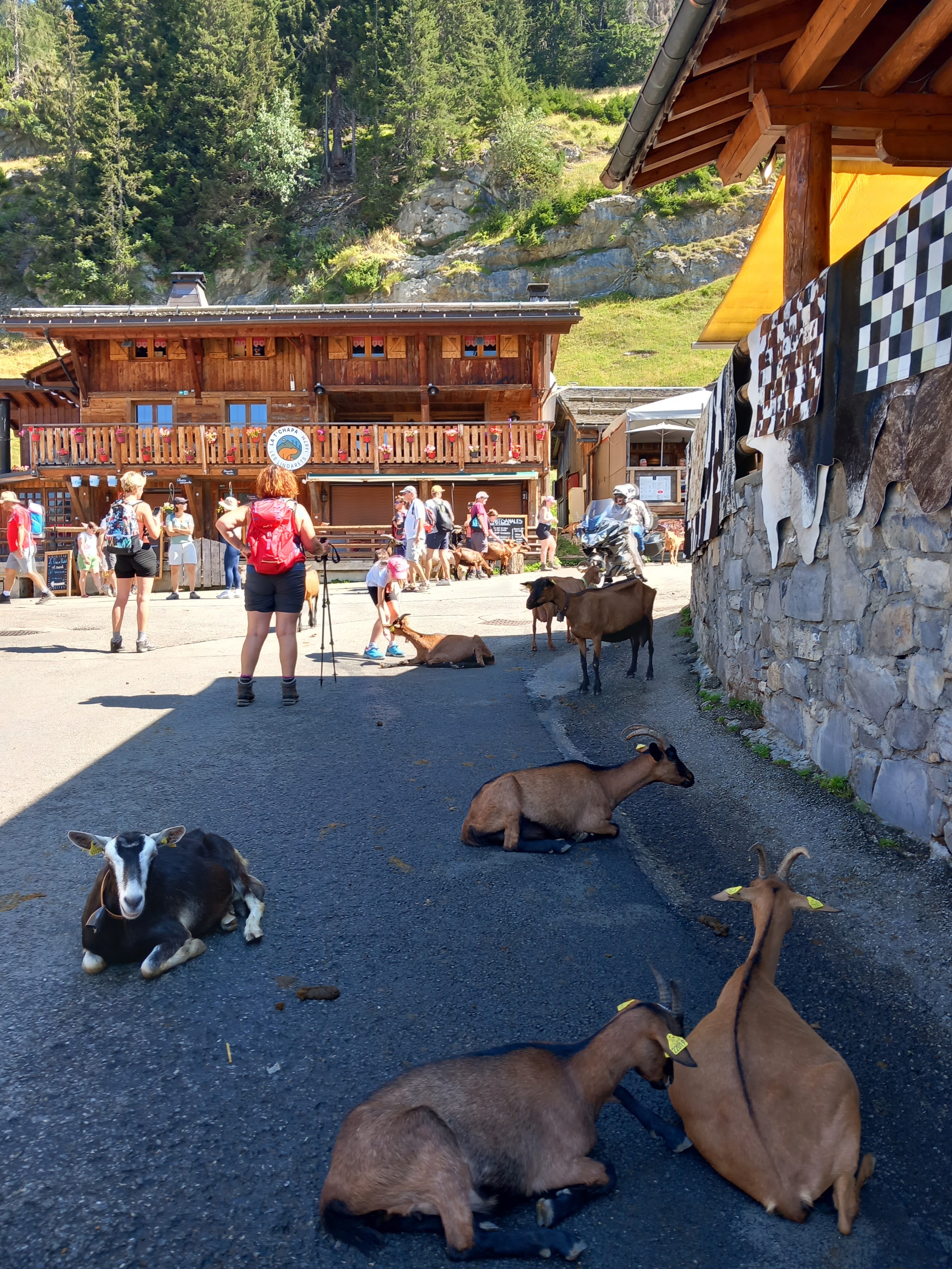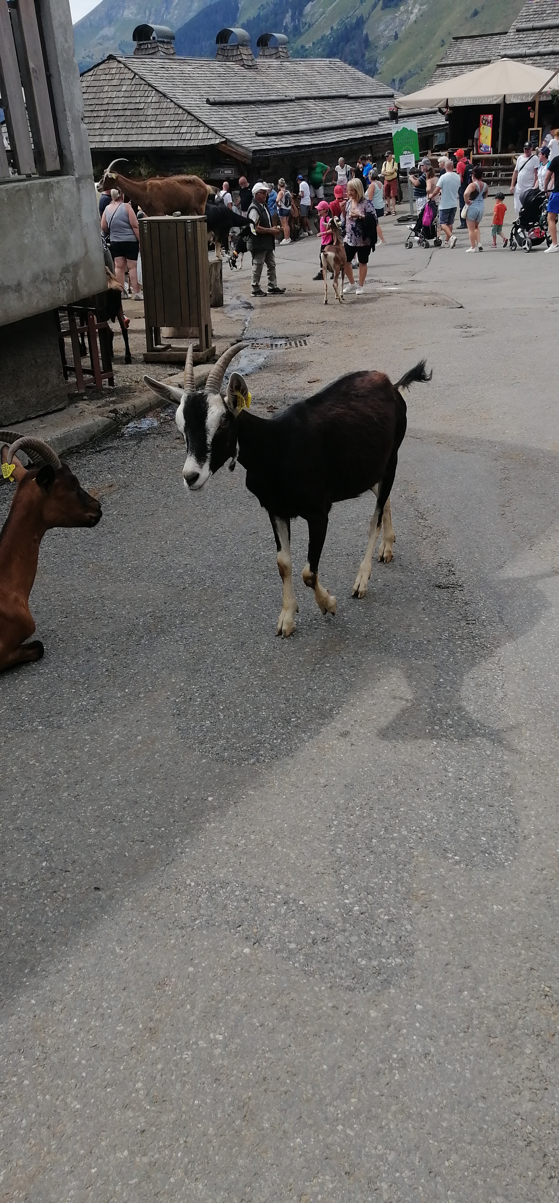 Village typique des alpages avec ses chèvres en totale liberté après tout elles sont chez elles plus que nous. On vient les déranger avec nos véhicules et elles ont bien raison de nous faire patienter en s'installant au beau milieu de la chaussé. Celui qui est pressé n'a rien à faire en ce lieu. Ça fait du bien d'être proche des animaux quelqu'ils soient. J'adore ce lieu et j'ai eu du plaisir à le faire découvrir à mes petits enfants.