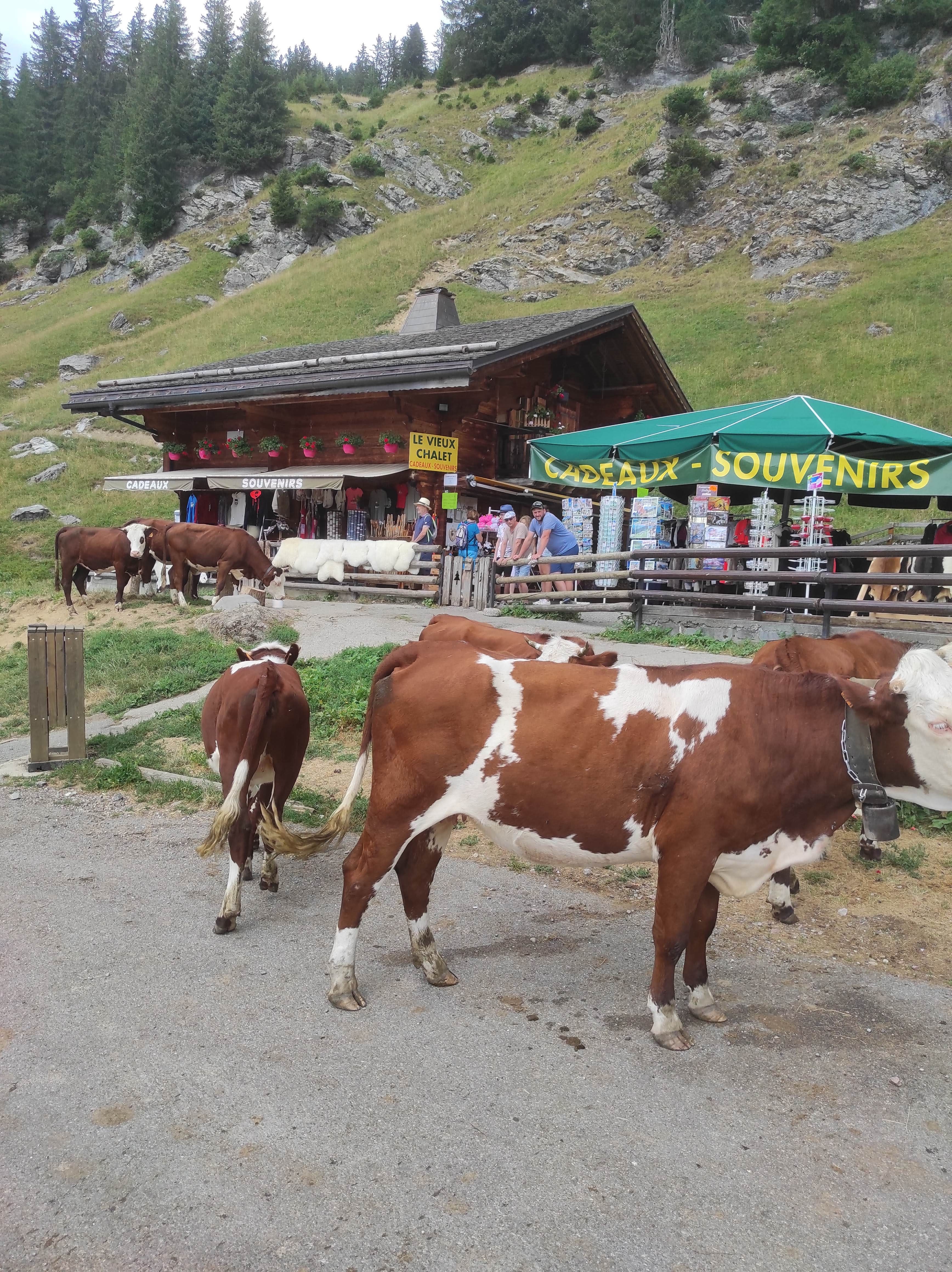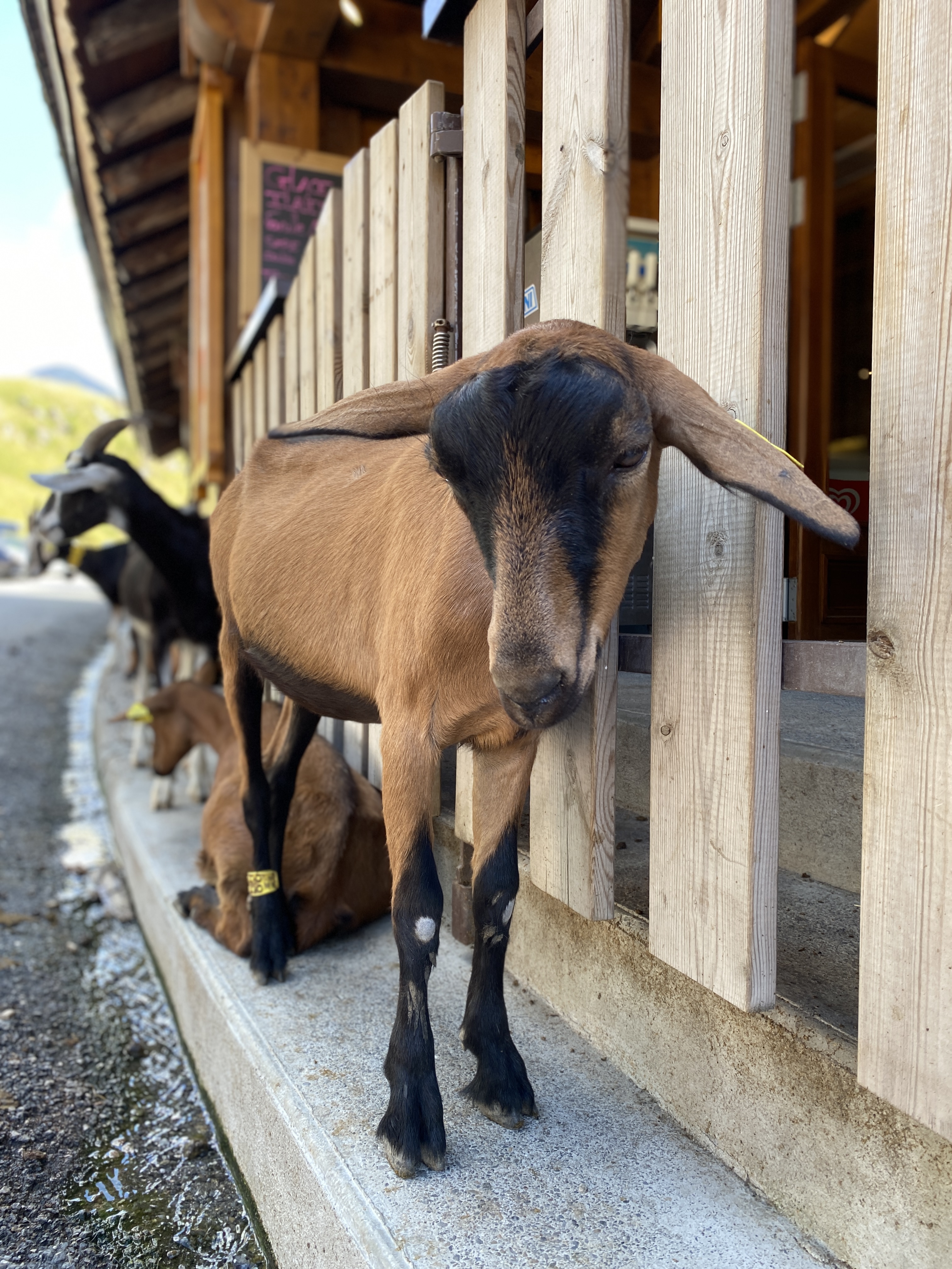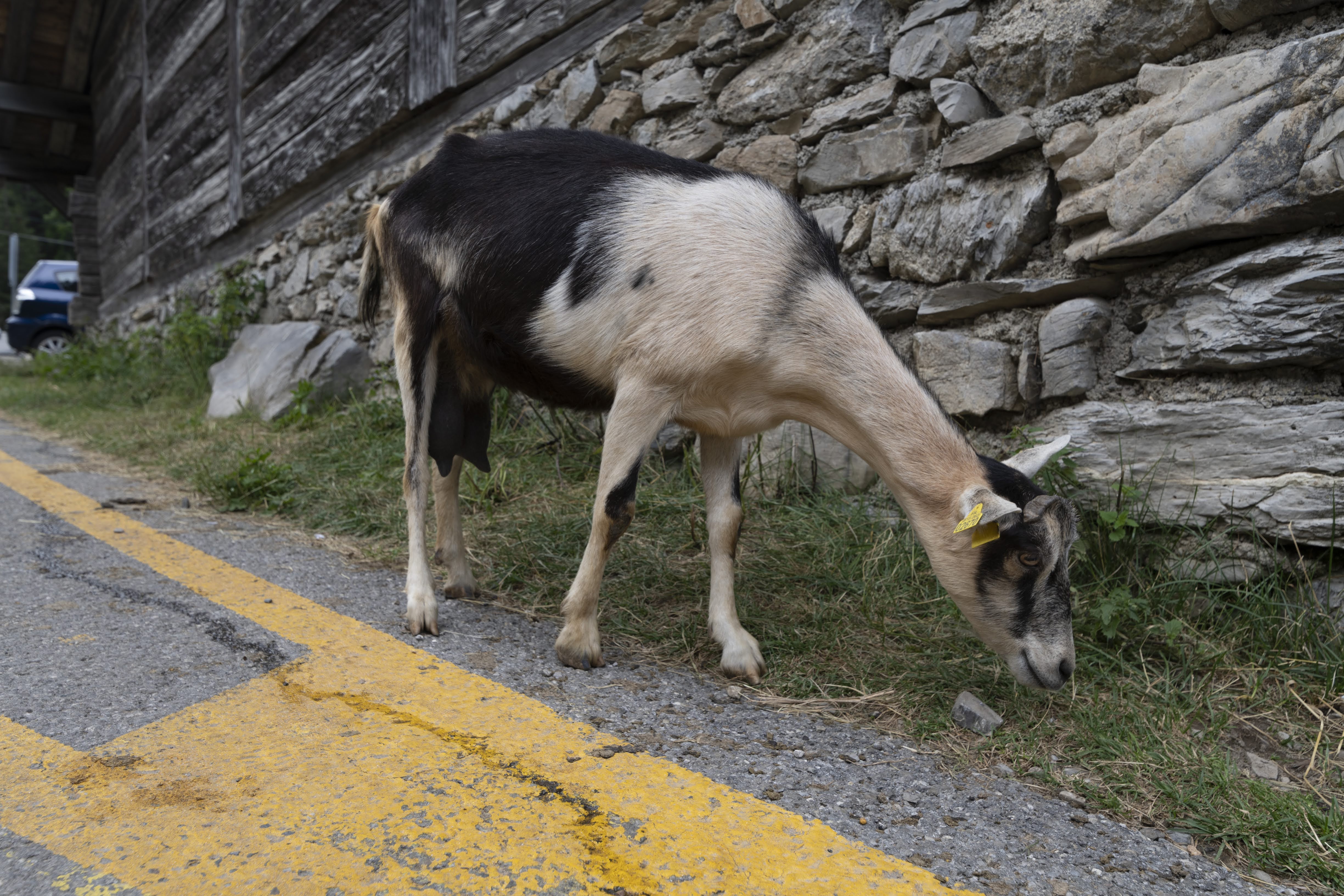 Village typique des alpages avec ses chèvres en totale liberté après tout elles sont chez elles plus que nous. On vient les déranger avec nos véhicules et elles ont bien raison de nous faire patienter en s'installant au beau milieu de la chaussé. Celui qui est pressé n'a rien à faire en ce lieu. Ça fait du bien d'être proche des animaux quelqu'ils soient. J'adore ce lieu et j'ai eu du plaisir à le faire découvrir à mes petits enfants.